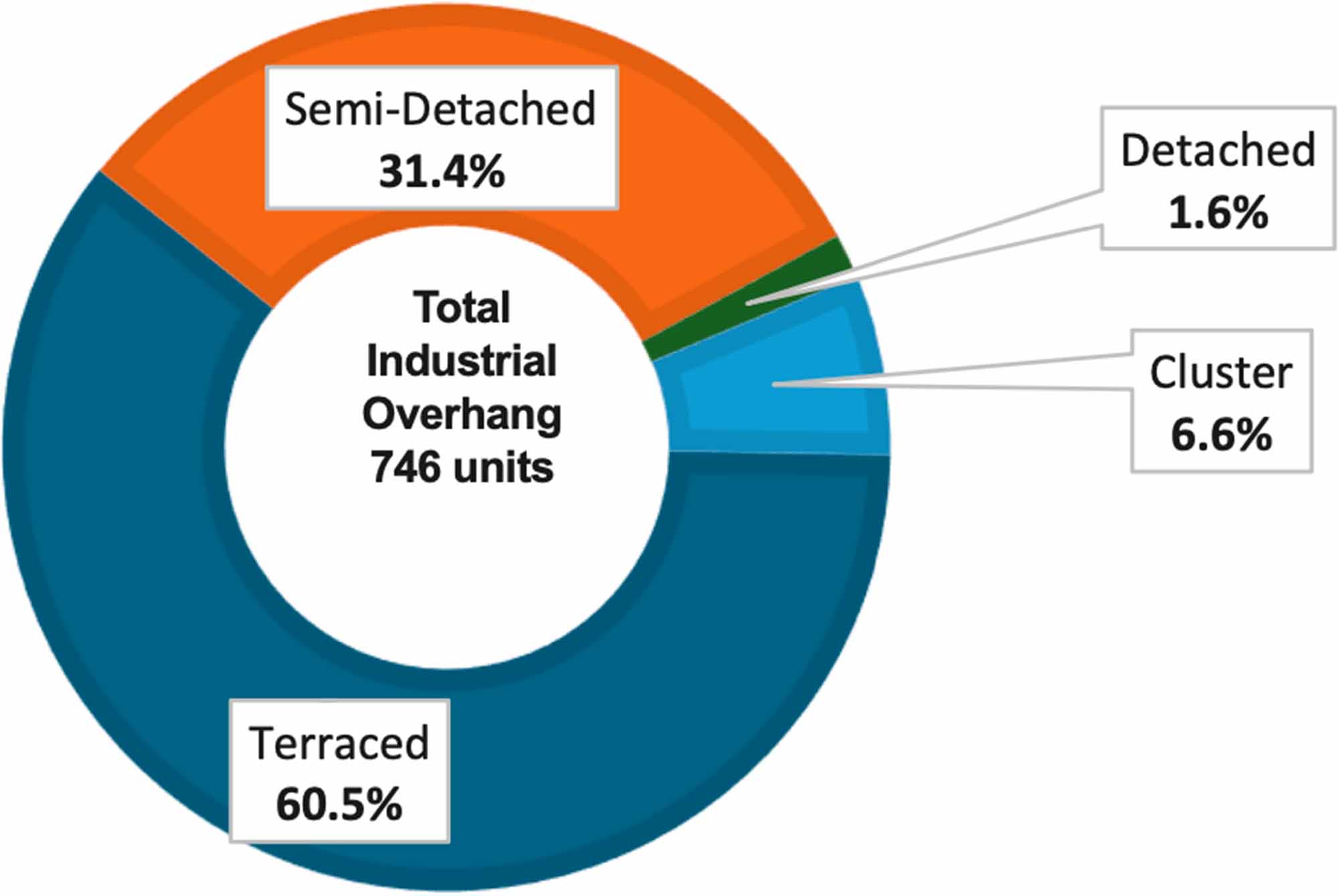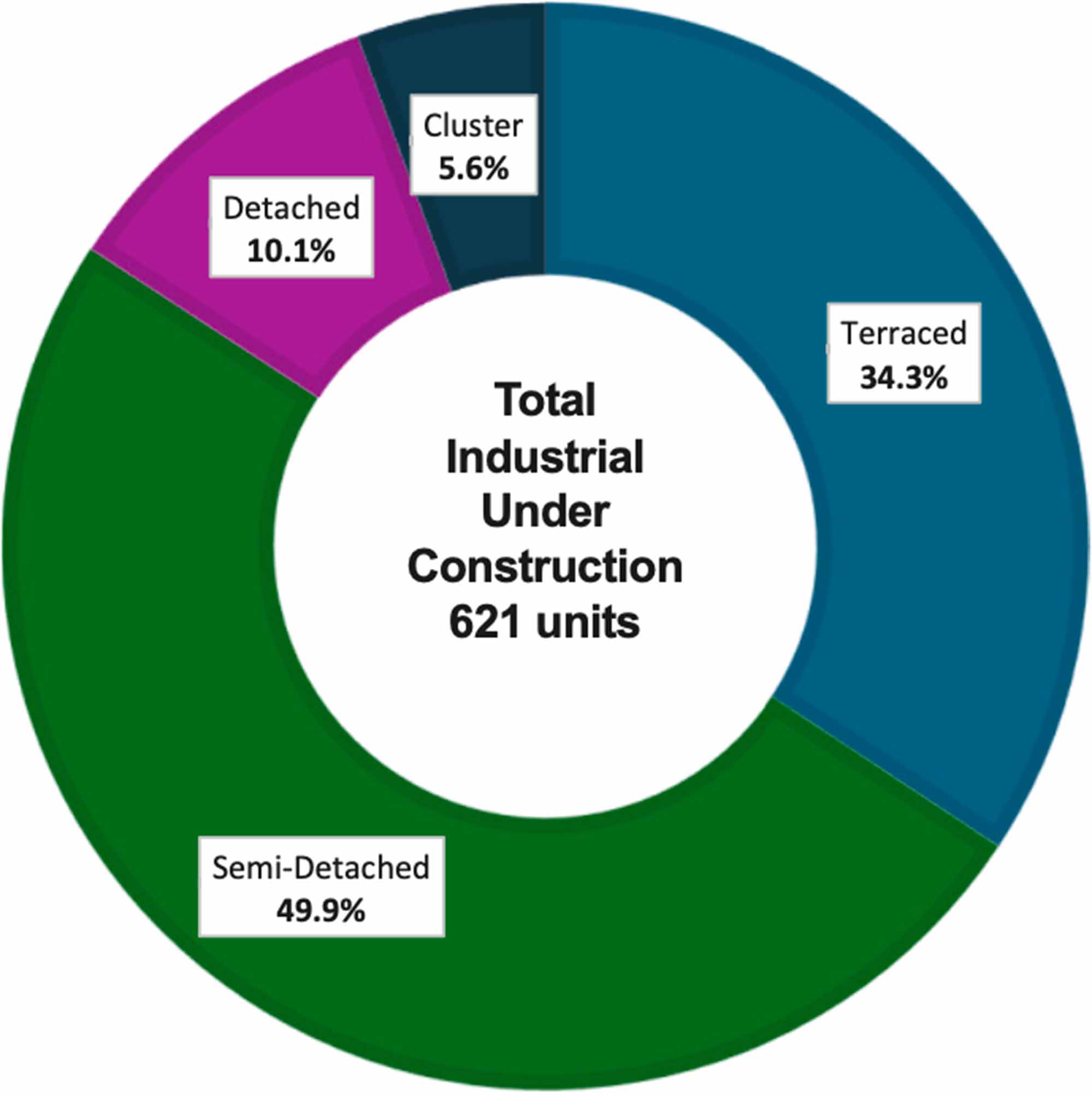 Semi-detached and terraced units respectively account for 49.9% (310 units) and 34.3% (213 units) of the total unsold under construction.