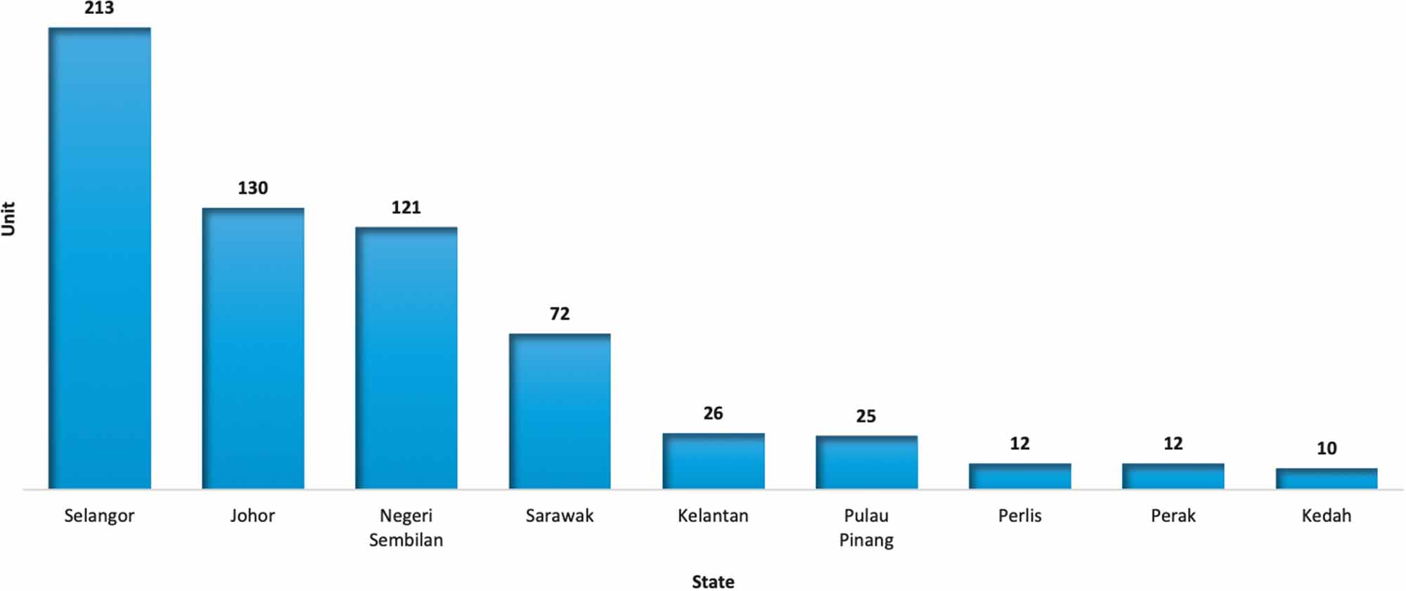 Selangor has recorded the highest percentage of unsold under construction at 34.3% (213 units), followed by Johor at 20.9% (130 units) and Negeri Sembilan at 19.5% (121 units).